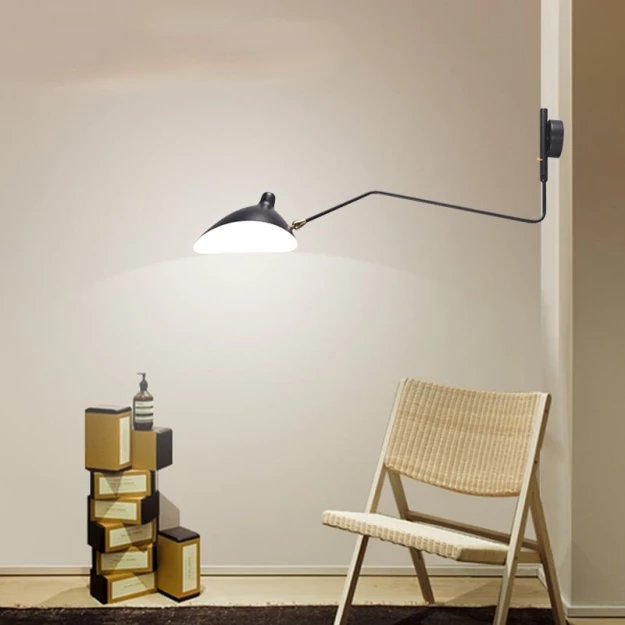 Одна из самых популярных и оригинальных моделей настенного светильника и все дело в его дизайне. Поворотный механизм способствует этому, а также позволяет коренным образом менять световой акцент на предметах интерьера. К тому же, это очень удобно. С помощью этого светильника можно зондировать помещение. Модель универсальна и одинаково хорошо подходит для интерьера жилых домов и квартир, офисных помещений, заведений общественного питания.