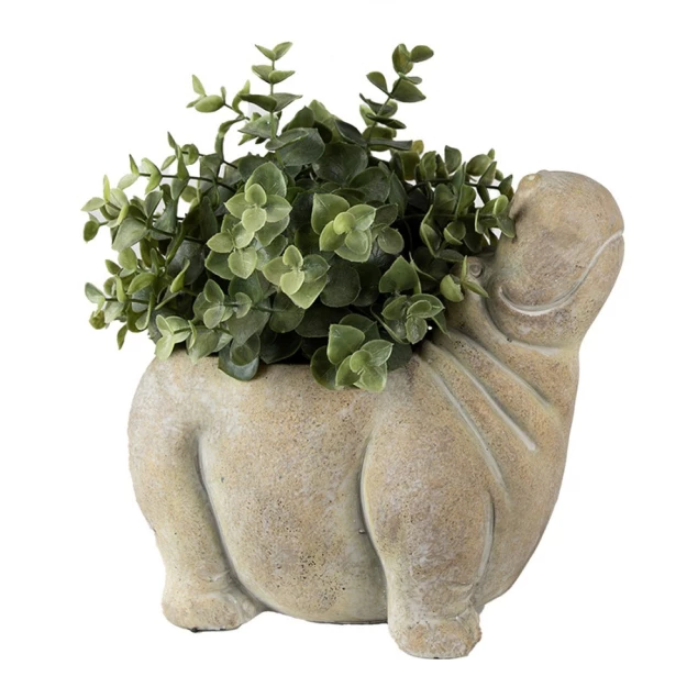 Декоративный вазон бежевый из камня, в форме бегемота от бренда Clayre & Eef. Размер верхнего отверстия 10х9 см.