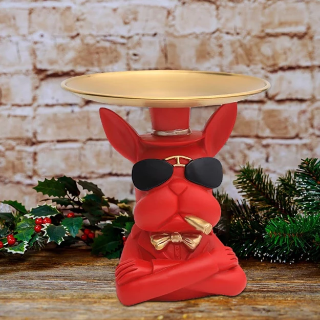 Очень оригинальный и стильный декоративный элемент в виде Статуэтки Подставки RED Bulldog 18cm.