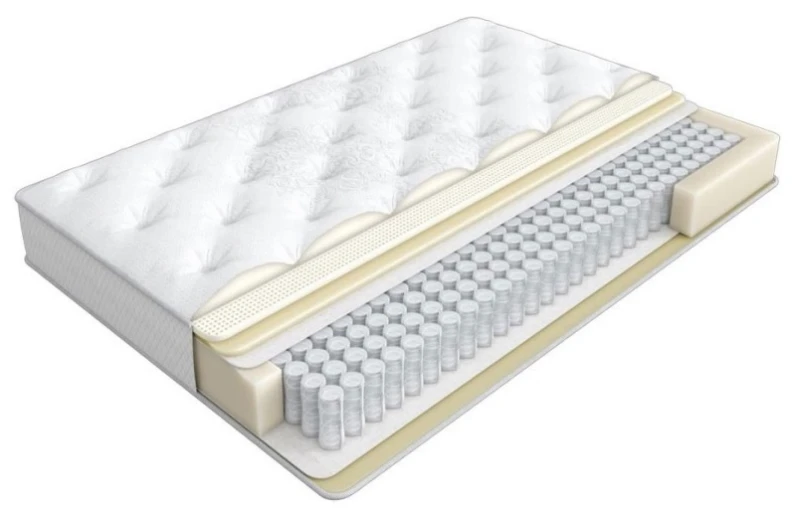 Улучшенная структура обеспечивает уменьшение возможного беспокойства от движений вашего партнера для каждого пружинного блока, что позволяет всем наслаждаться спокойным сном. Этот тип матраса, который состоит из индивидуальных пружин в сочетании с латексным слоем, создает здоровую и комфортную среду за счет использования специальных биоматериалов. Он обеспечивает ортопедическое распределение веса тела по всей поверхности матраса и правильное положение позвоночника. Латексный слой имеет плотность 65 кг/м3 и толщину 1 см, обеспечивая долговечность использования. В каждом грамме латекса содержится около 500 тысяч клеток, образуя настоящую сеть взаимодействия. Каждая пружина малого диаметра 56 мм упакована индивидуально в прочный текстильный материал, сделана из высокопрочной стали диаметром 1,8 мм, и на каждом квадратном метре матраса содержится 282 пружины. Каждая пружина работает независимо, реагируя на давление, создаваемое вашим весом, и обеспечивая дополнительную поддержку в нужных местах. Полиуретановый кожух вокруг ядра матраса укрепляет его края.