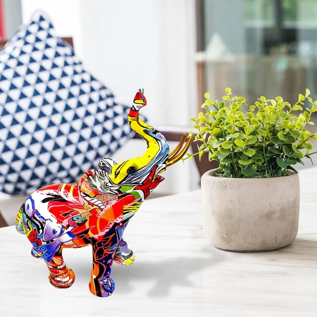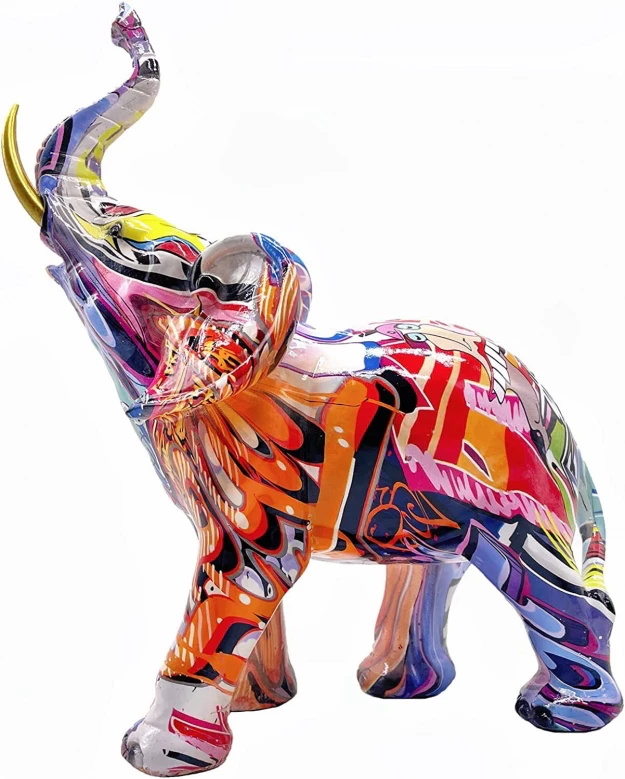 Красочная фигурка слона с граффити принтом имеют современный художественный дизайн, который добавляет уникальный штрих декора вашего дома или офиса.